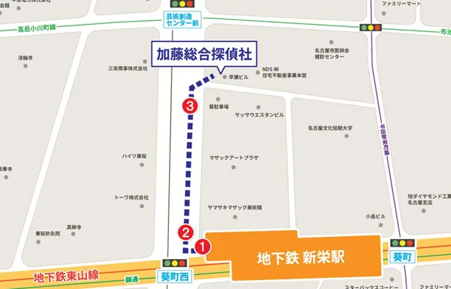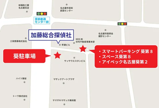 1番出口から徒歩3分【お車でお越しのお客様へ】●当社(名古屋営業所)には駐車スペースがございません。近くにコインパーキングがいくつかございますので、そちらをご利用ください。