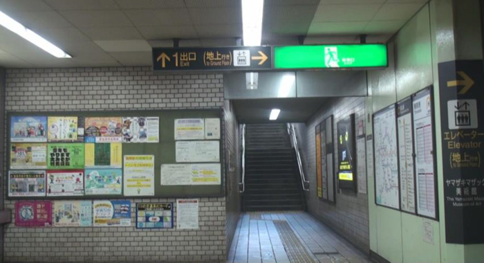 名古屋市営地下鉄東山線「新栄町駅」1番出入口より地上に出ます。
