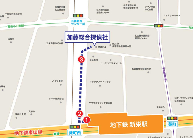 1番出口から徒歩3分【お車でお越しのお客様へ】●当社(名古屋営業所)には駐車スペースがございません。近くにコインパーキングがいくつかございますので、そちらをご利用ください。
