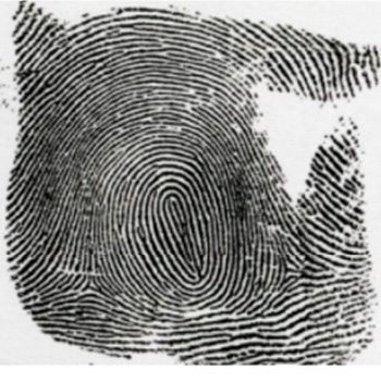 渦状紋、蹄状紋、弓状紋のいずれにも属さない形で、日本の1%にも満たない大変珍しい指紋です。